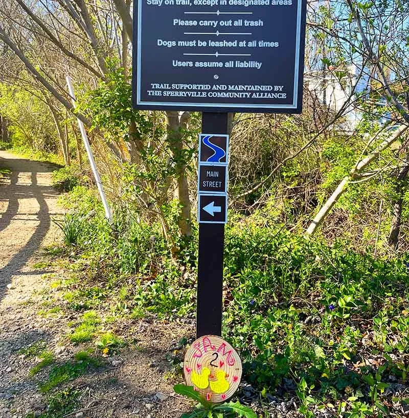 Location: All the ducks are hidden along the main town portion of the River Walk in Sperryville (behind the coffee shop Before and After). (Tap this link to see more about the trail here: www.sperryfest.org/trailnetwork)